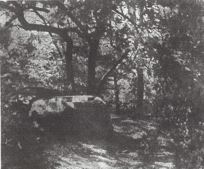 It did not take John long to realize that that wooden troughs fell short of his expectations. Horse and wagon traffic and large lumber wagons rolling down the hillside jarred or bumped into the troughs and soon they showed signs of location damage. One day, a wagon hit a trough and it crashed into the gorge. John B. made up his mind to build a permanent water trough that could withstand wagons and people. He eyed a six by eight-foot boulder lying at the bottom of the hill and decided that would solve his problem.